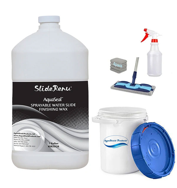 Everything you need in one BUCKET to keep your slide safe, slick, and looking good! Includes one gallon of AquaSeal Slip N Shine, Microfiber Duster, five Microfiber Cloths, 16oz Fine Mist/Stream Spray Bottle and a 5-gallon Bucket.