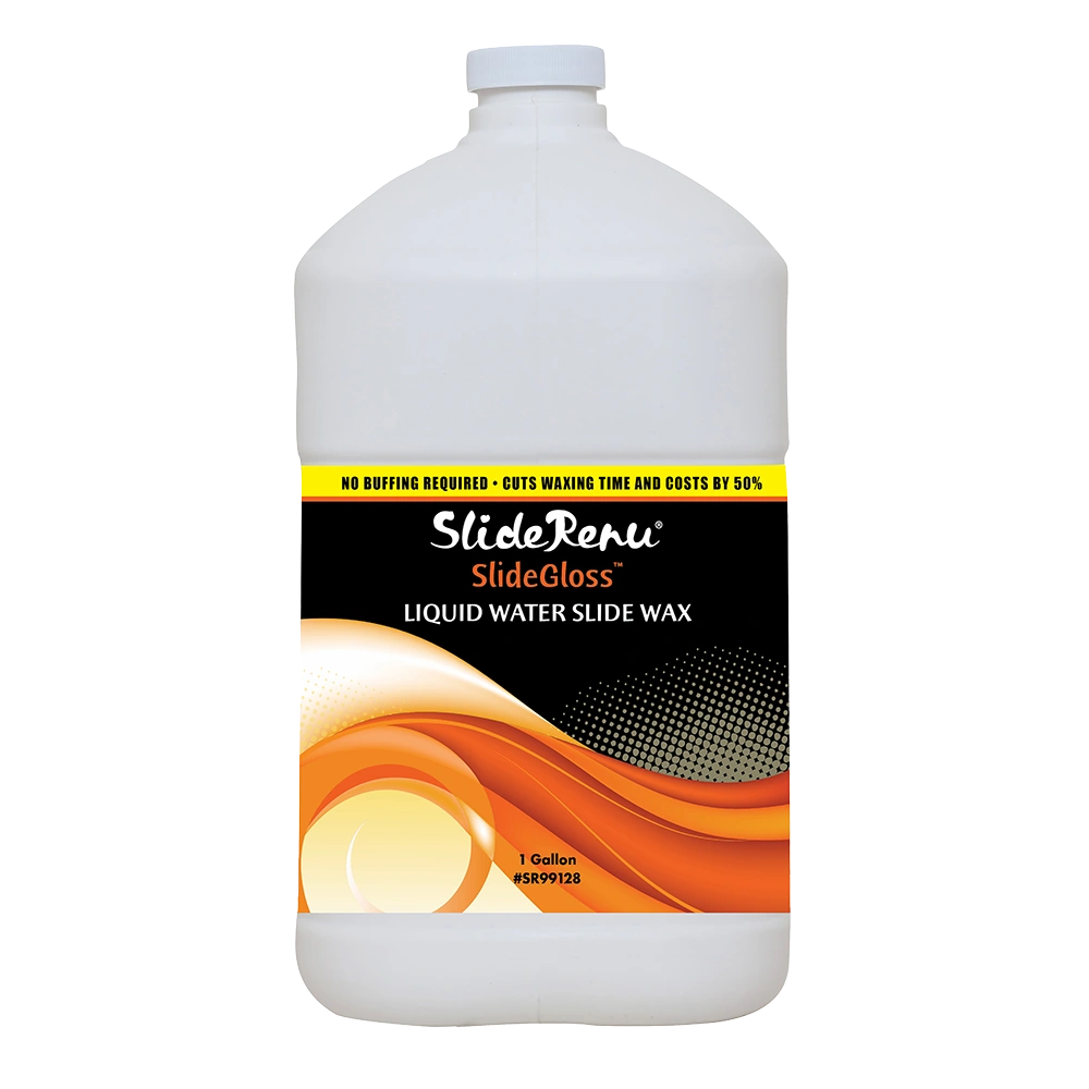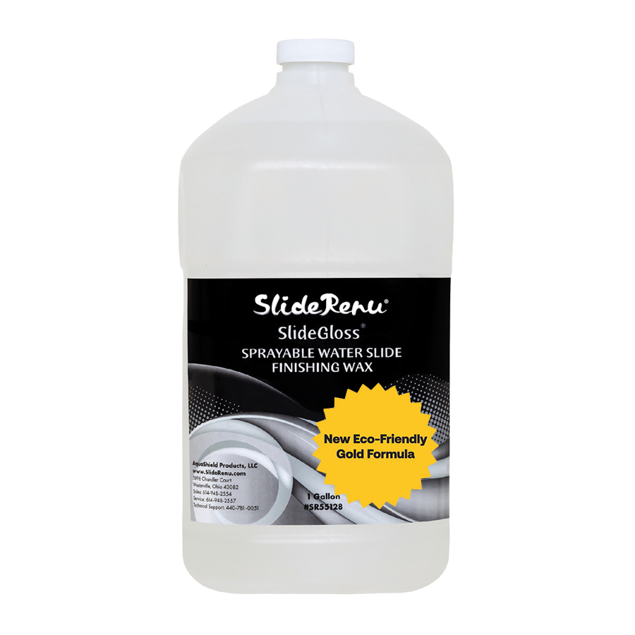 SlideGloss® is a unique sprayable water repellent finishing wax that produces the quickest “WET LOOK SHINE” to dull color faded fiberglass water slides. It has been specially formulated to be easily sprayed-on and immediately wiped-off by your internal maintenance staff or seasonal employees.
